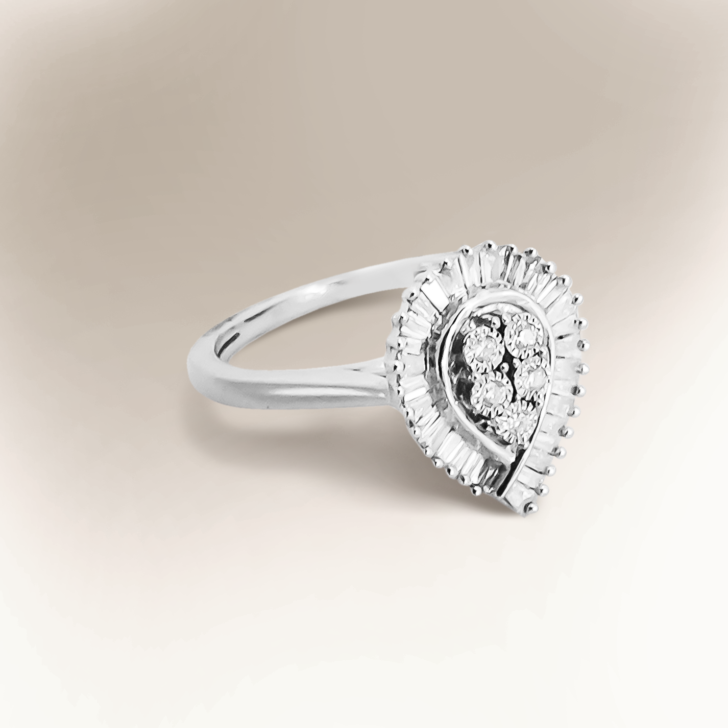 0.25ct Diamond Baguette Teardrop Wedding Band Ring in 9ct White Gold
