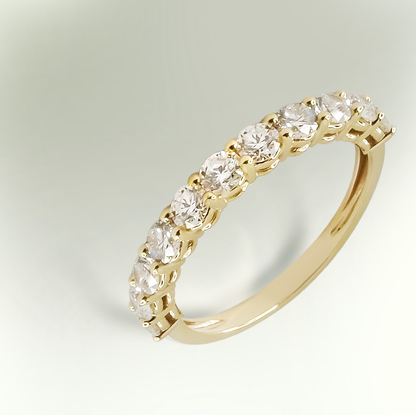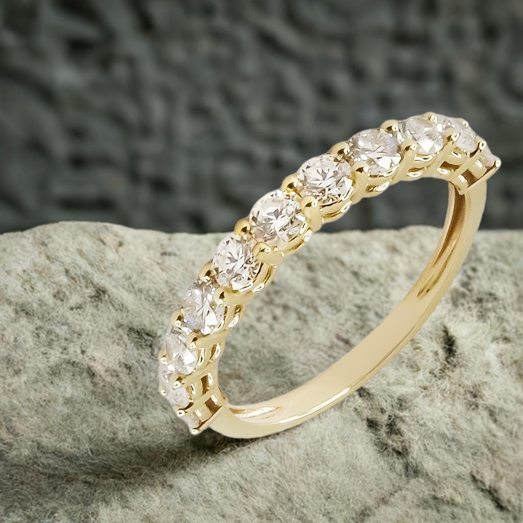 D-E Color, VS1 Clarity Lab-Grown Diamond Eternity Engagement or Wedding Band Ring set in gleaming 9ct Yellow Gold. This classic design features a sparkling diamonds, perfect for celebrating your love story. Customize with a wedding band and resizing available. Shop now!