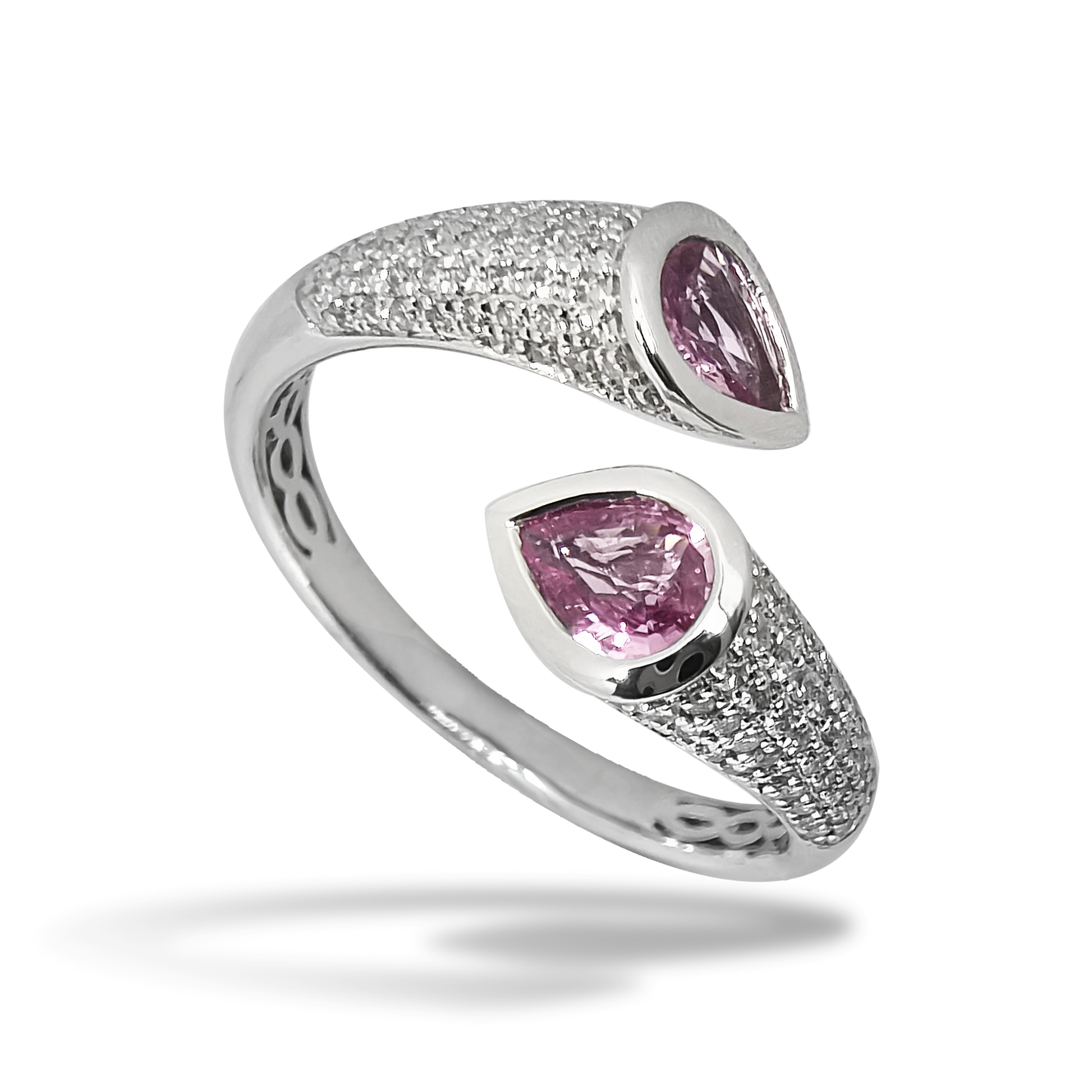 0.35ct Pink Sapphire Pear Duet Design Ring in 9ct White Gold