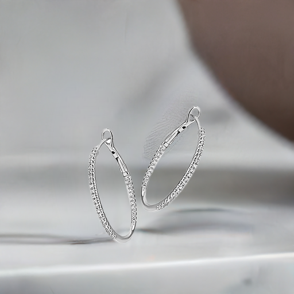 24mm Diamond Hoops in 9ct White Gold.