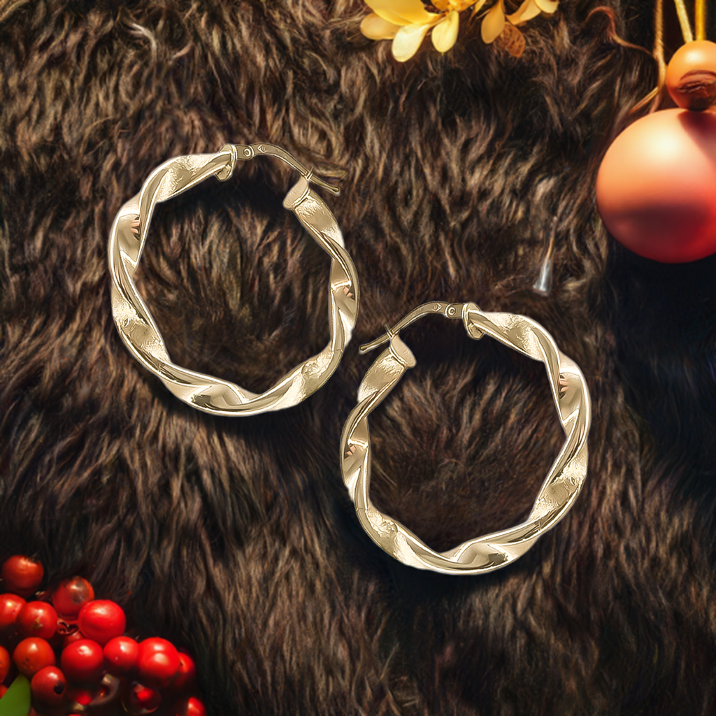 29mm Spiral Twist Hoop Earrings in 9ct Yellow Gold