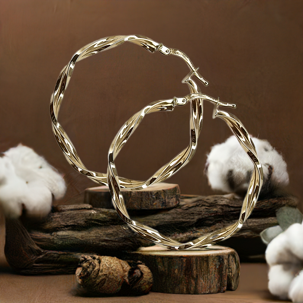 36mm Double Layer Twist Spiral Hoops in 9ct Yellow Gold
