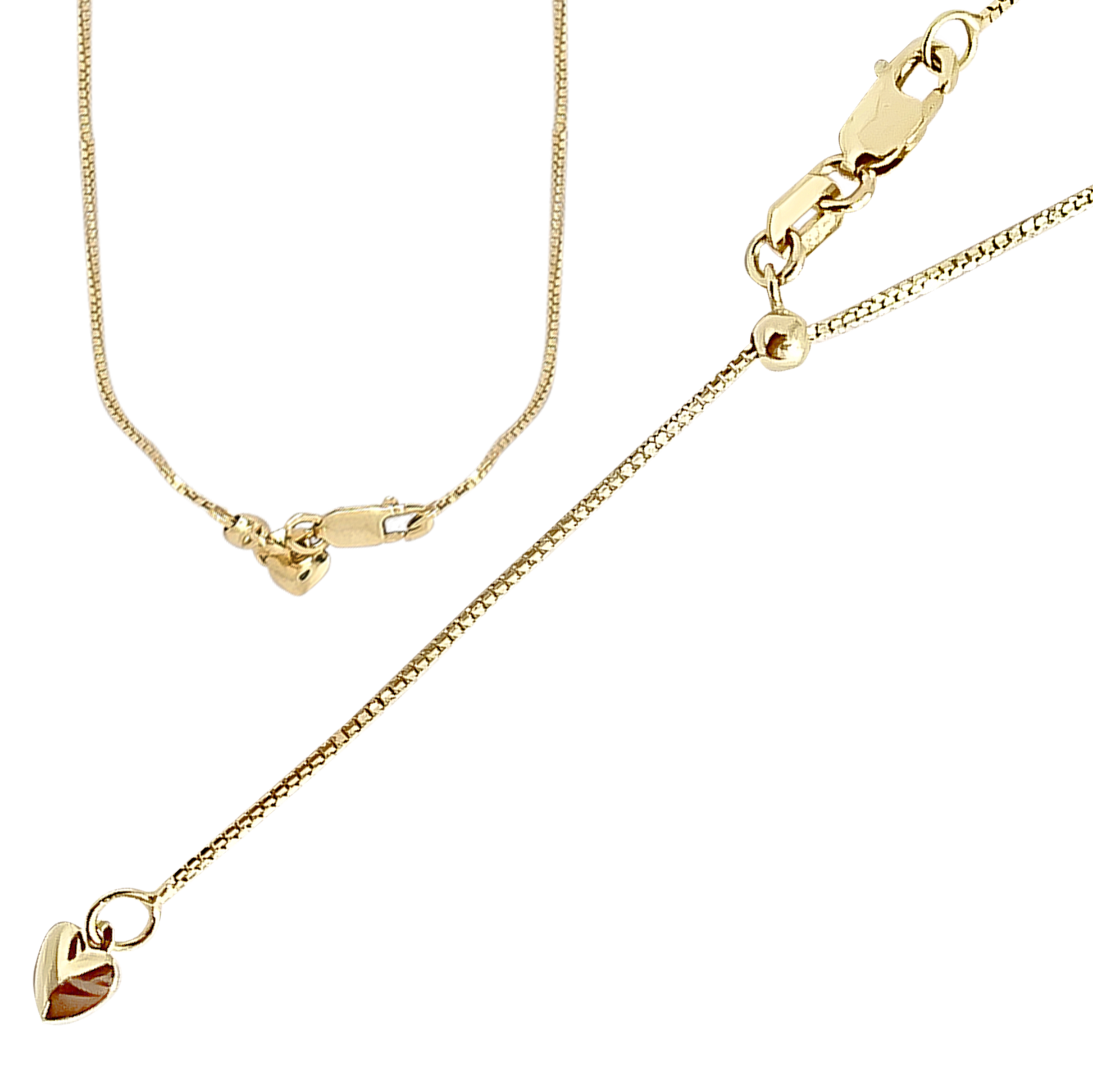 50cm Box Link Slider with Heart Charm Chain in 9ct Yellow Gold