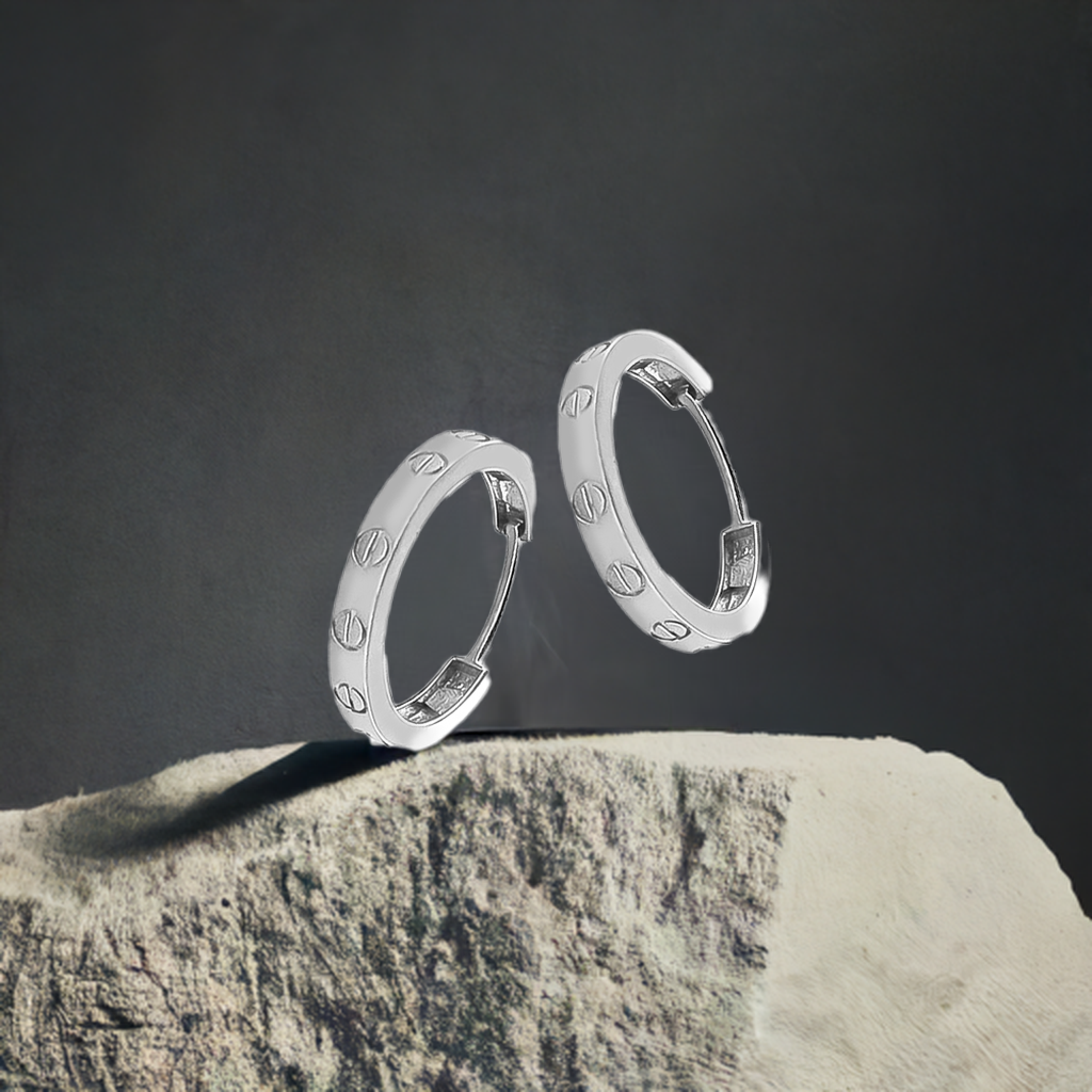 7mm Bolt Design Hoops in 9ct White Gold