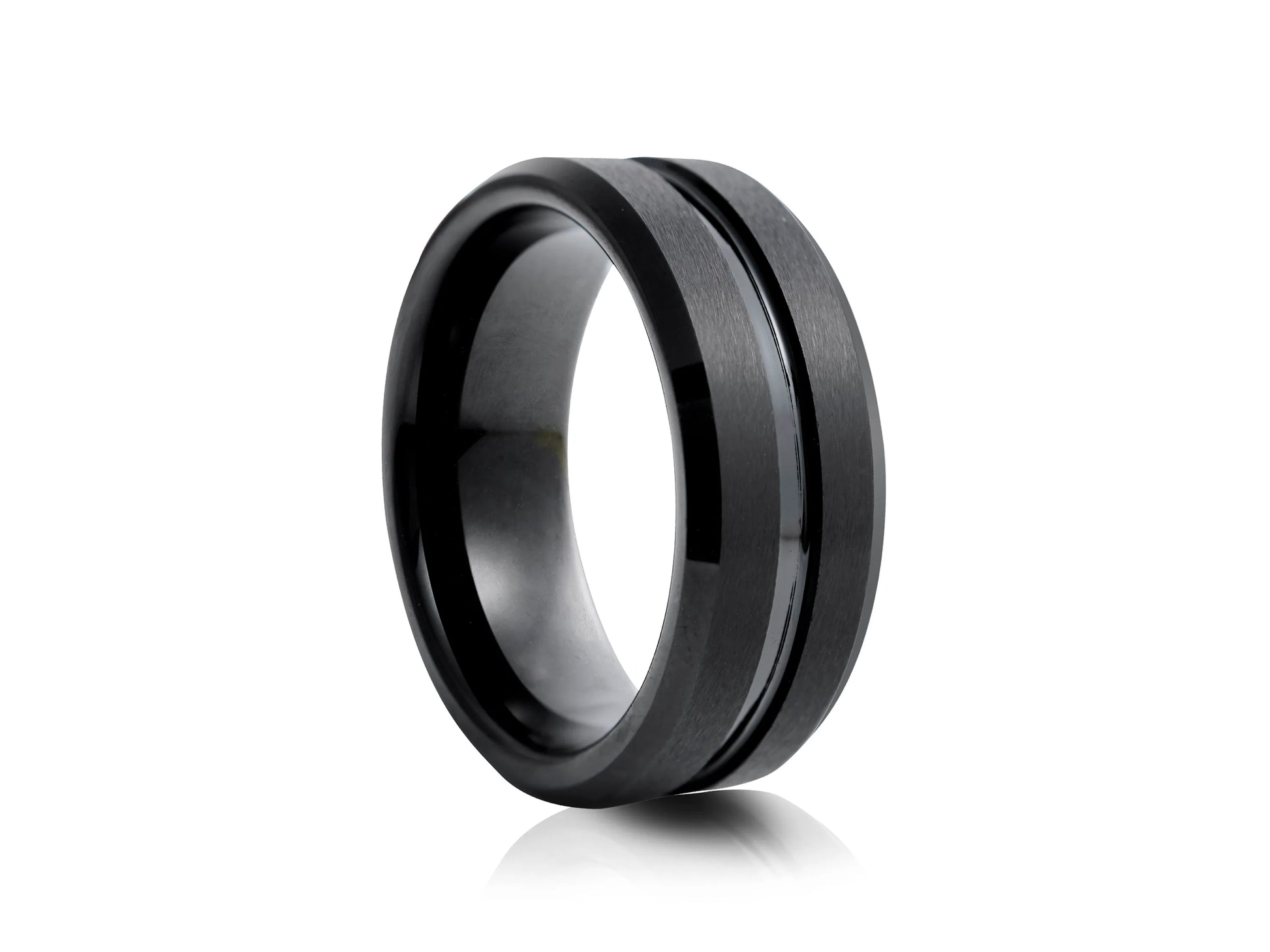 8mm Tungsten Ring - Black with Black Matte Groove with Polished Finish