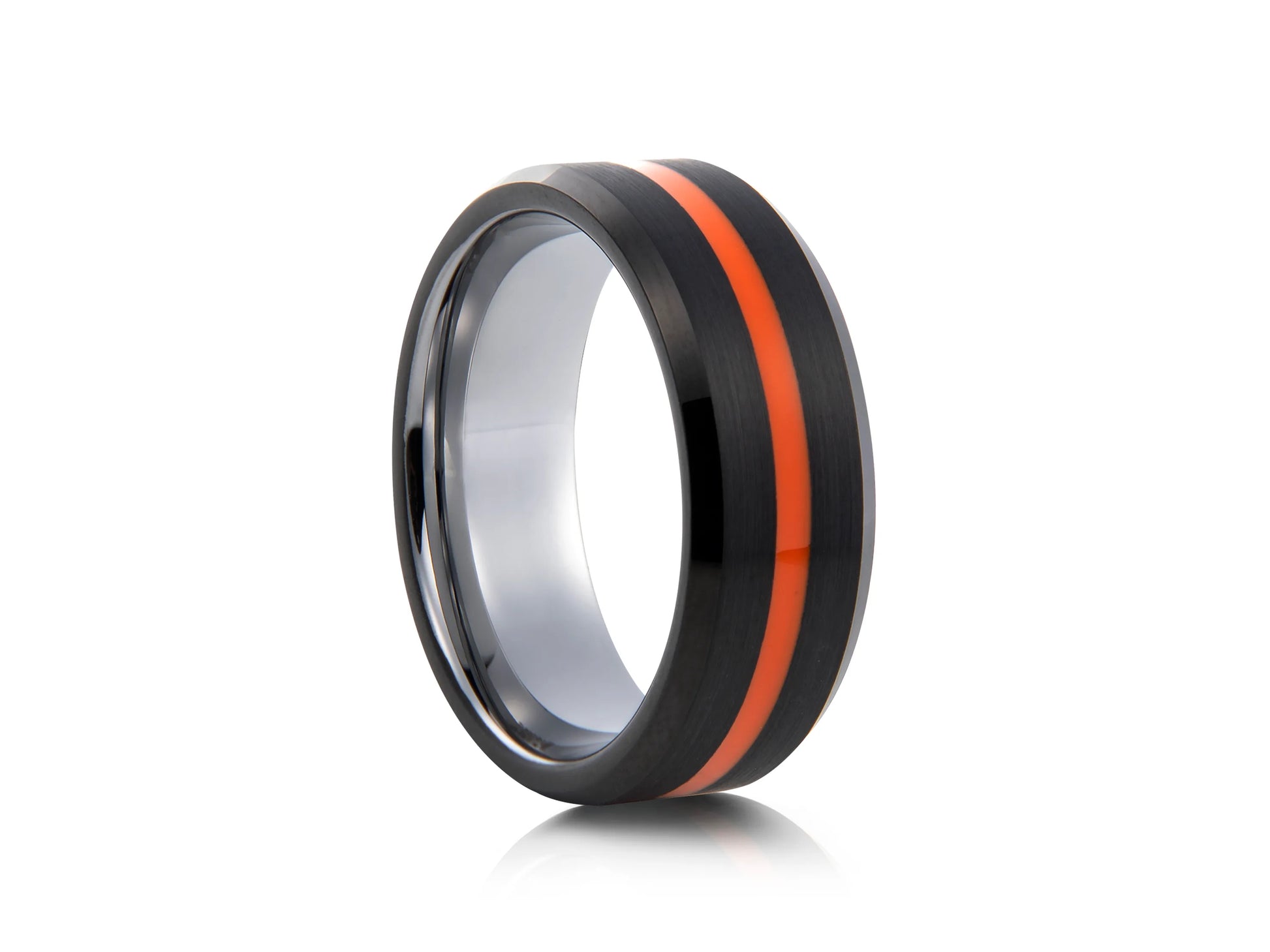 8mm Tungsten Ring - Black with Orange Center Line