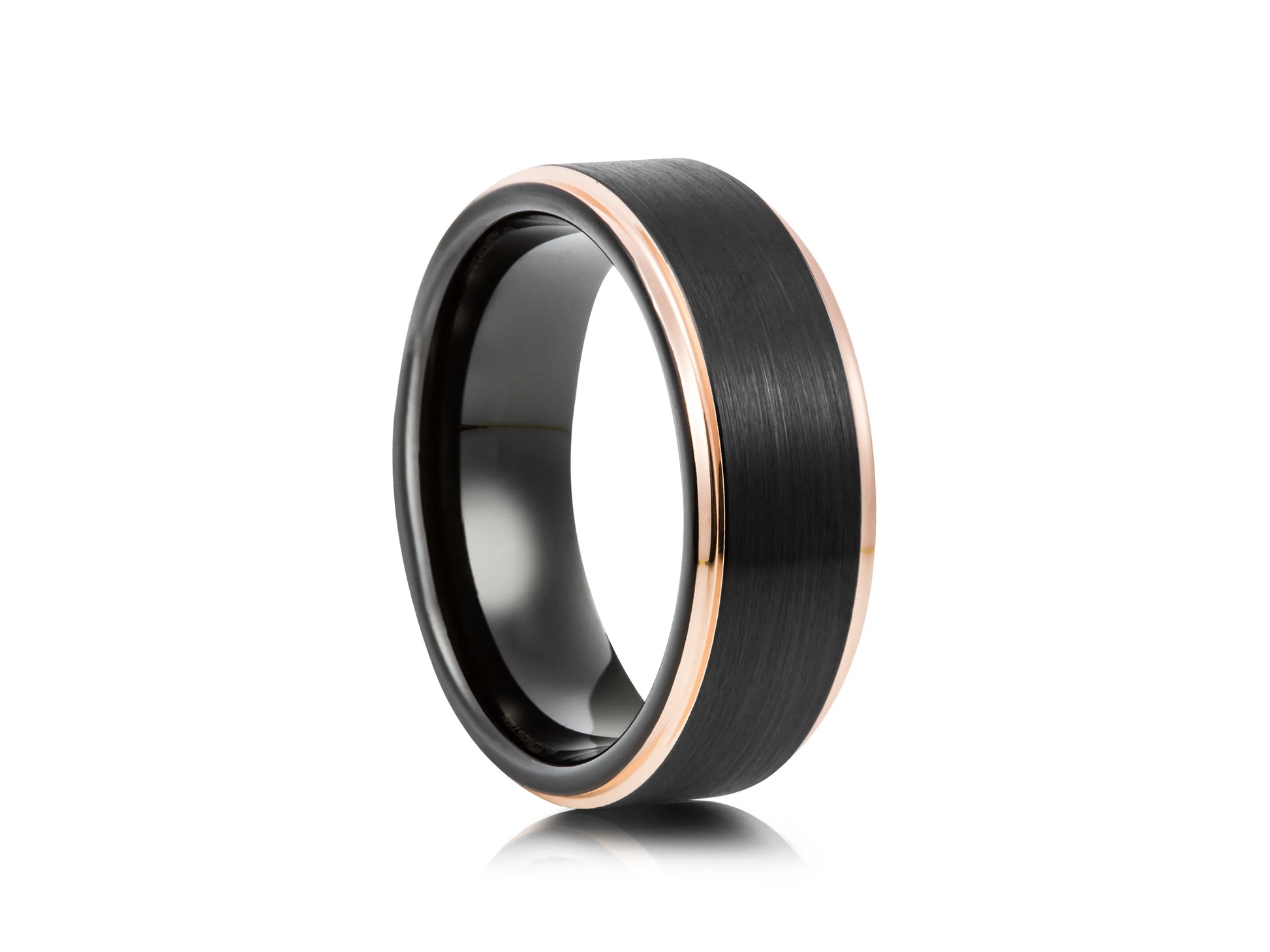 8mm Tungsten Ring - Black with Rose Gold Platting Finish