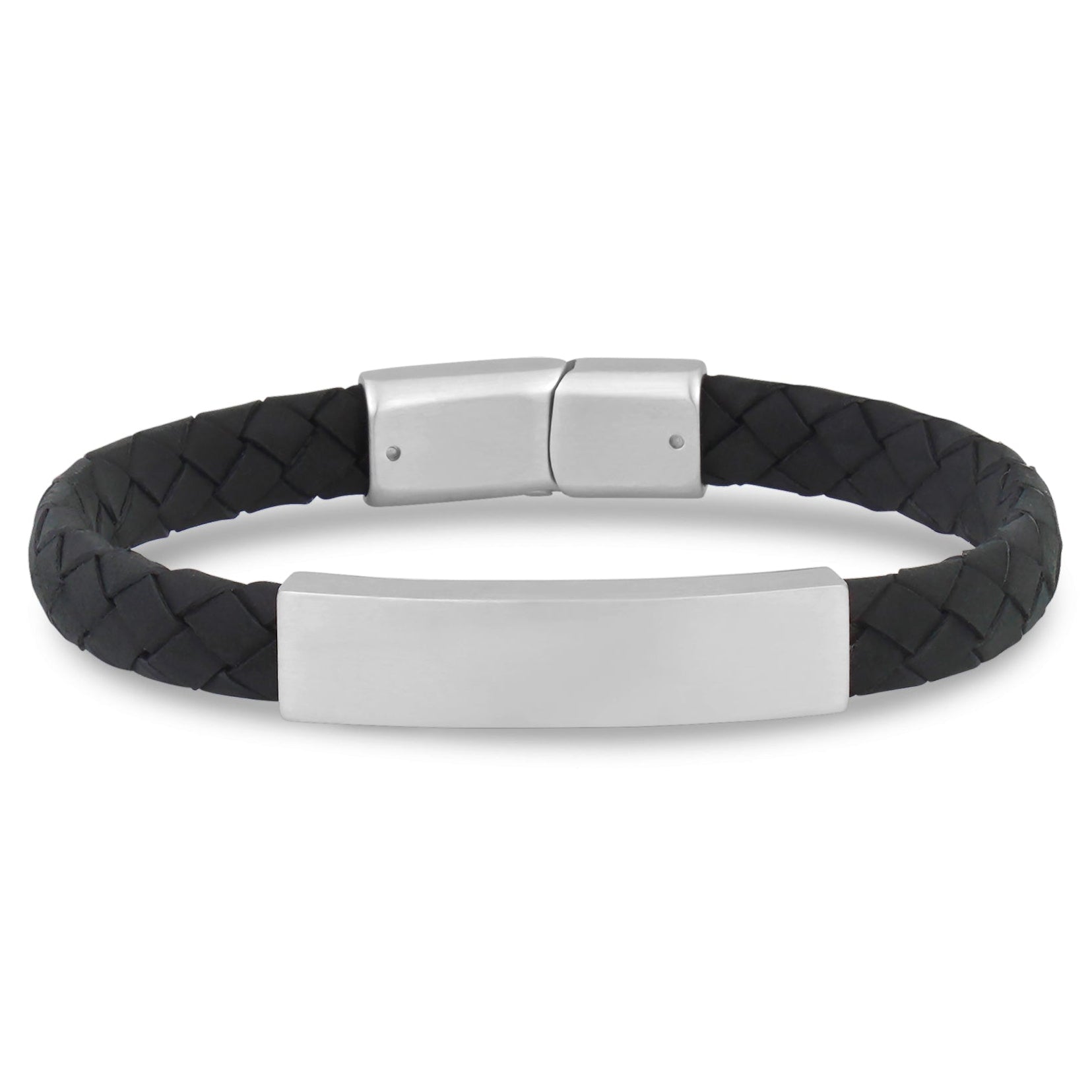 ARZ Steel Flat Cross Woven Leather with Silver ID Plaque Bracelet