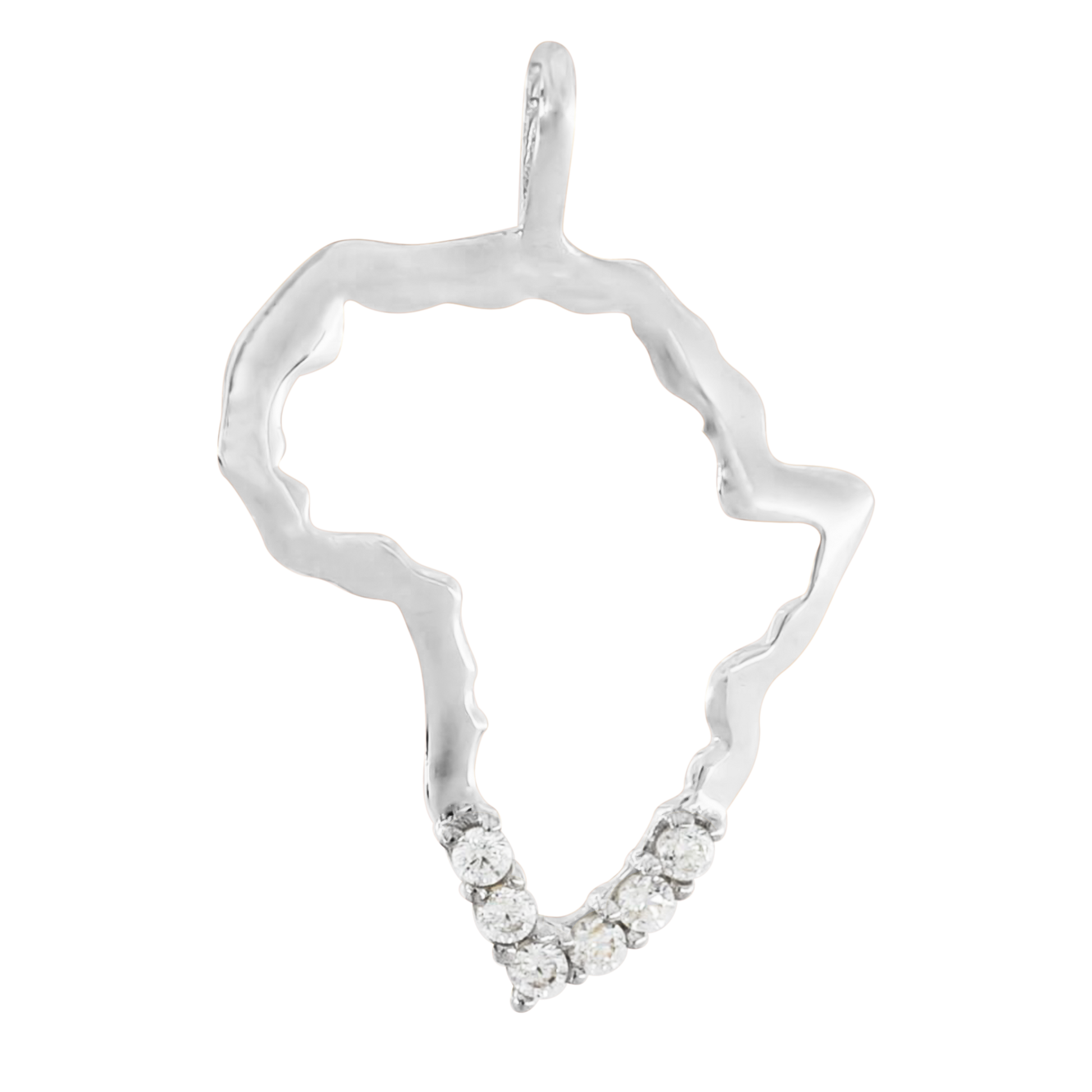 Cubic Zirconia Map of Africa Pendant in 9ct White Gold