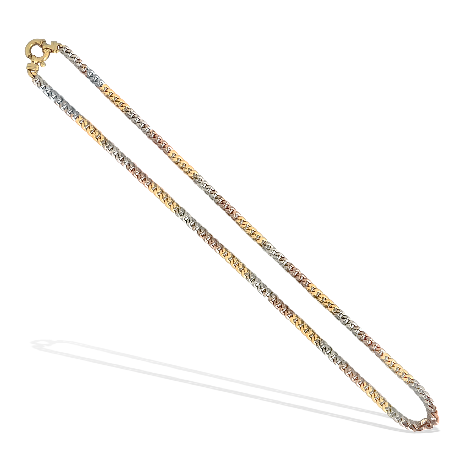 Beautiful classic Curb Link Chain in all three gold design Necklace in Tri Gold