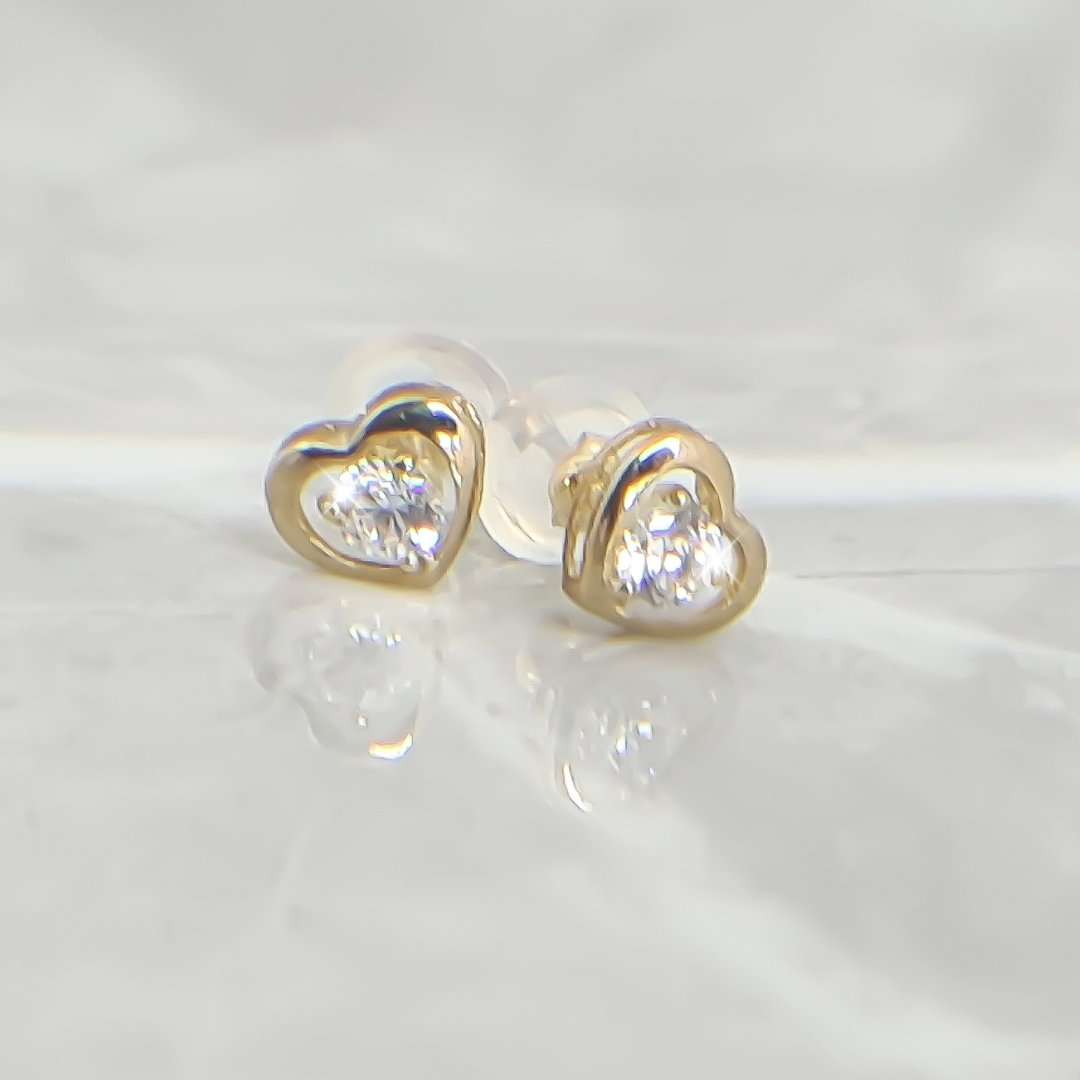 Heart Solid Halo surrounding a Cubic studs in 9ct Yellow Gold