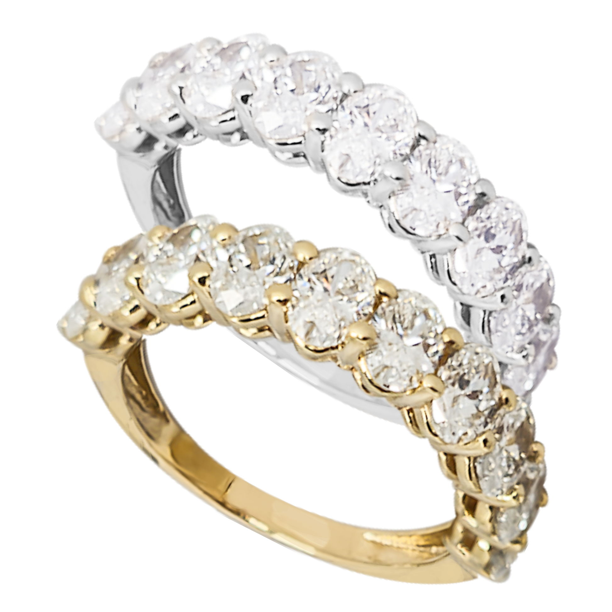 D-E Color, VS1 Clarity Lab-Grown Oval Cut Diamonds set in a Eternity Band set in gleaming 9ct Gold. This classic design features a sparkling diamonds, perfect for celebrating your love story. Customize with a wedding band and resizing available. Shop now!