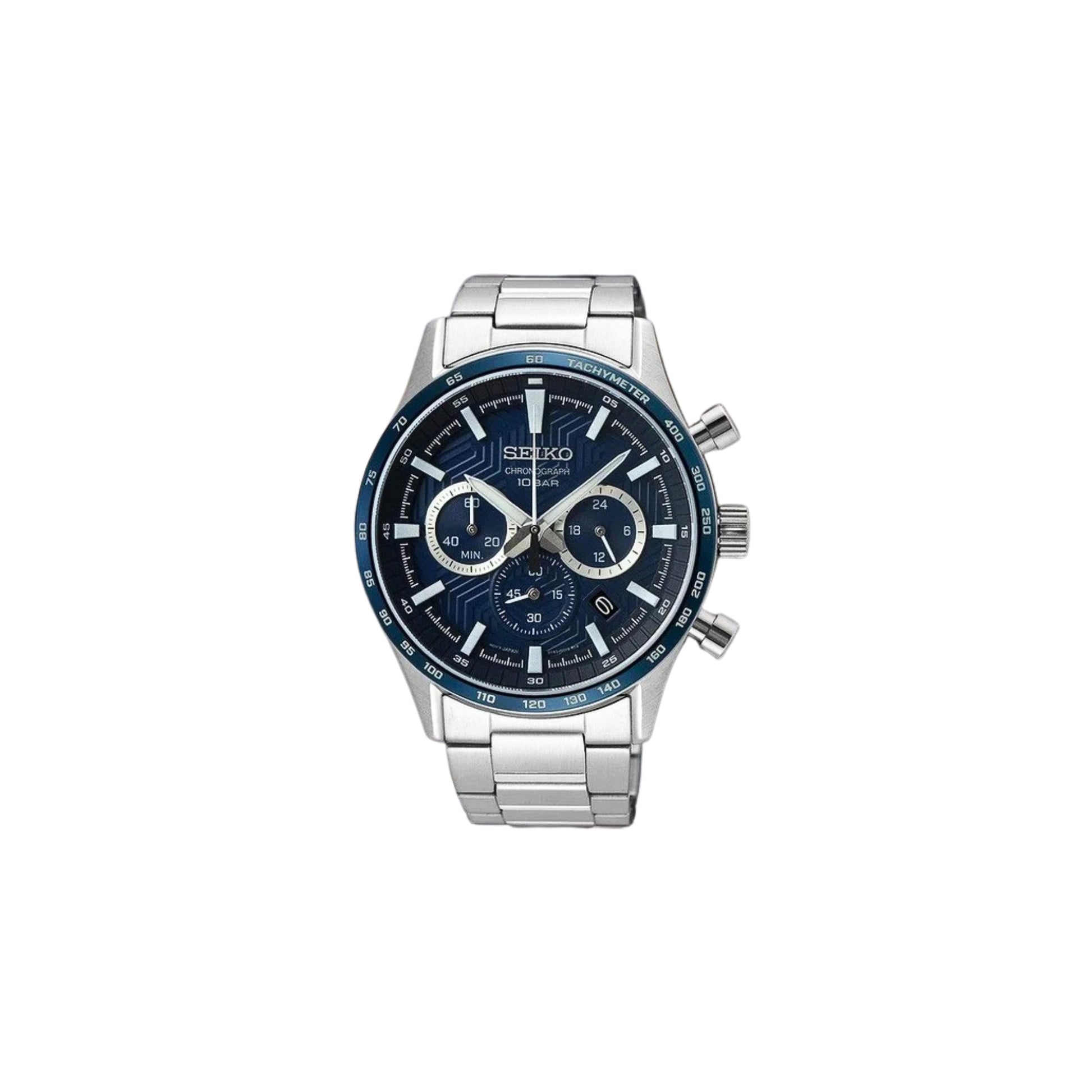 The blue dial’s depth and contrast make it a standout piece whether worn with casual outfits or smarter attire, while the chronograph functionality adds practical performance for everyday timing needs.