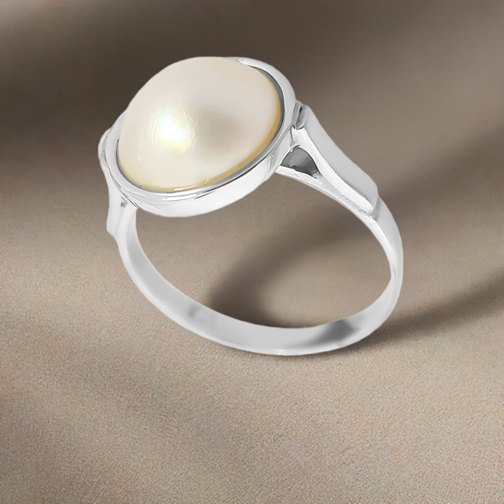 Unique Tower Support Single Mabe pearl ring in 925 Sterling Silver